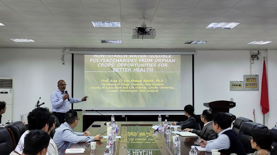 11月26日上午,食品科技学院邀请了新西兰奥塔哥大学教授Alaa El-Din Ahmed Bekhit在望海楼A105为作了“Non-Starch Water-Soluble Polysaccharides from Orphan Crops: Opportunities for Better Health”学术报告。报告会由李瑞副教授主持,钟赛意教授、学院部分青年学术骨干及研究生参加了本次交流活动。