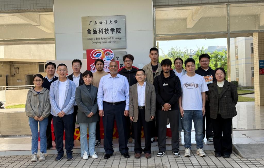 Aladin教授系统介绍了作物(如芋头、小米、木薯等)的资源特性与研究价值,以芋头非淀粉水溶性多糖研究为例,采用改进提取法提升了多糖得率、改善色泽与纯度,芋头多糖具有显著的乳化性、泡沫性与热稳定性,并在体外消化模型中表现出良好的非消化性与α-淀粉酶抑制活性,具有血糖调节与肠道健康功能配料的潜力。Aladin教授还分享了其在多糖结构表征、流变性能及体外益生元和免疫调节作用方面的最新发现。学院张杰良教授介绍了海洋食品功能因子与营养健康团队的基本情况和代表性科研成果;团队负责人钟赛意教授结合双方优势以及前期与Aladin教授团队的交流合作进展,对未来开展更深入的合作提出了建设性思路。