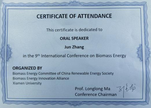 12月5—7日,食品科技学院张俊博士和硕士生朱青盛参加了福建厦门召开的“第九届生物质能源国际会议”。张俊博士受邀在会议上作了“基于木质纤维的脂肪酶微阵列限域构筑及其催化废油脂增强生物柴油绿色合成研究”的专题报告,分享了最新研究成果,得到了与会专家的积极评价。