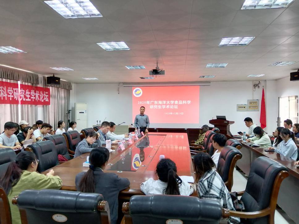 为拓宽研究生的学术视野,激发研究生科研创新活力,进一步提升人才培养质量,12月19日,食品科技学院联合研究生院举办了“2025年广东海洋大学食品科学研究生学术论坛”。本次论坛以“创新食品研发 凝练学术表达”为主题,吸引了来自相关学科70多位博硕士研究生积极参与。食品科技学院院长刘书成教授、副院长赵云涛教授,以及研究生导师张翼教授、魏帅教授、陈忠琴副教授等教师出席活动。论坛由研究生辅导员李育林副教授主持。