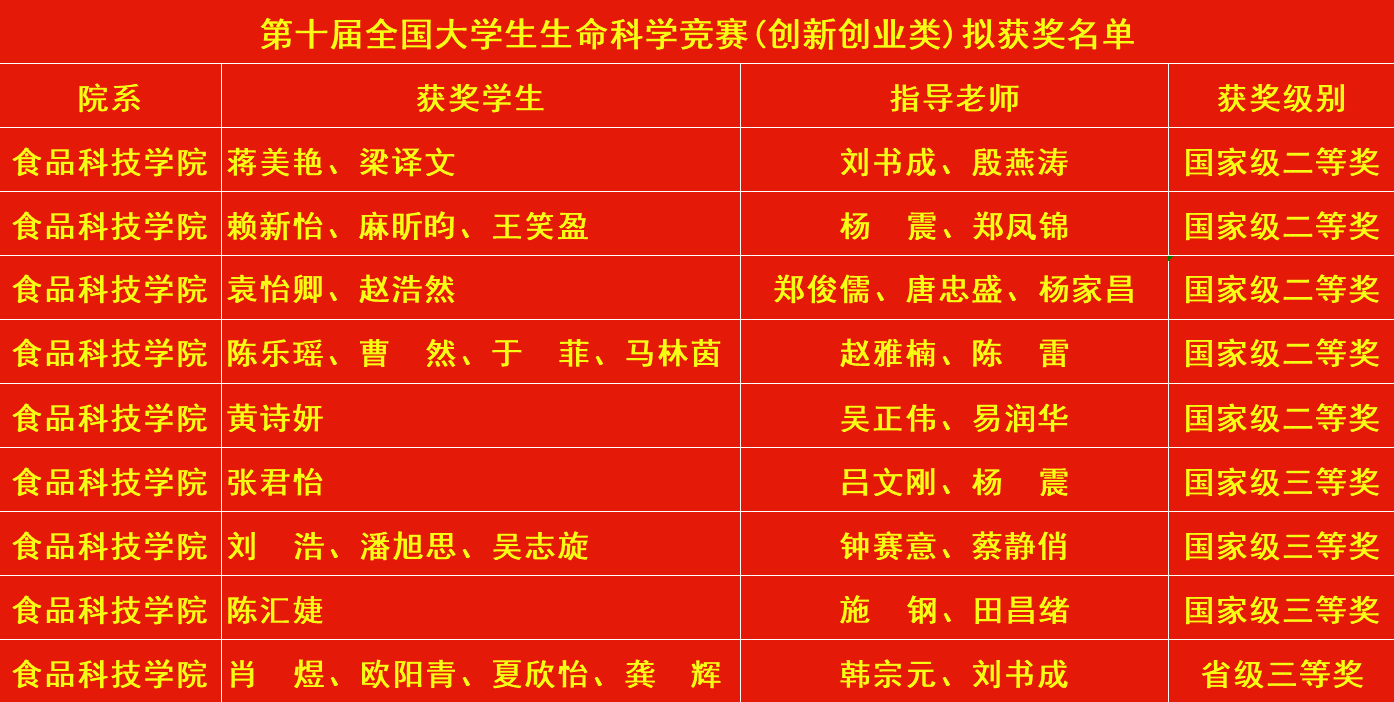 近日,食品科技学院在第十届全国大学生生命科学竞赛(创新创业类)取得佳绩。共荣获国家级二等奖5项、三等奖3项及省级三等奖1项,充分展现了我院学子优秀的专业能力和创新素养。