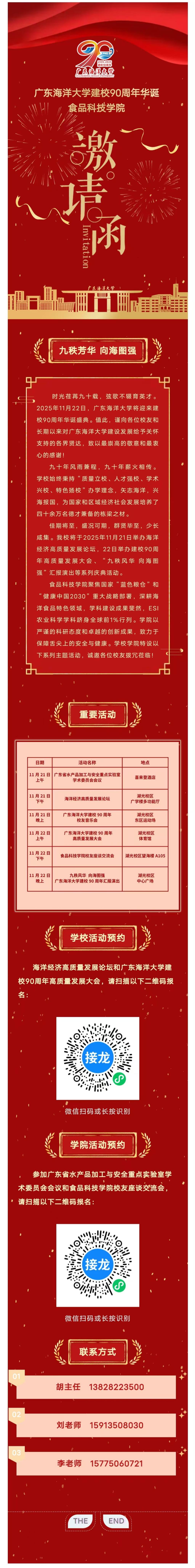广东海洋大学建校90周年华诞食品科技学院邀请函